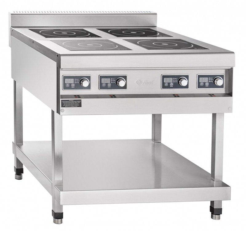 Плита индукционная 4-х конфорочная КИП-49П-5,0, краш. подставка, 840х900х940 мм, 9 ур. мощности, +60…+240 С, 20 кВт, 400 В, 4 независимых индуктора, стеклокерамика 6 мм, 2 жироулавливающих фильтра, защита от перегрева абат abat чувашторгтехника элинокс фросто торговая механика продажа москва профессиональное Кухонное оборудование бар кафе ресторан столовая 71000019982